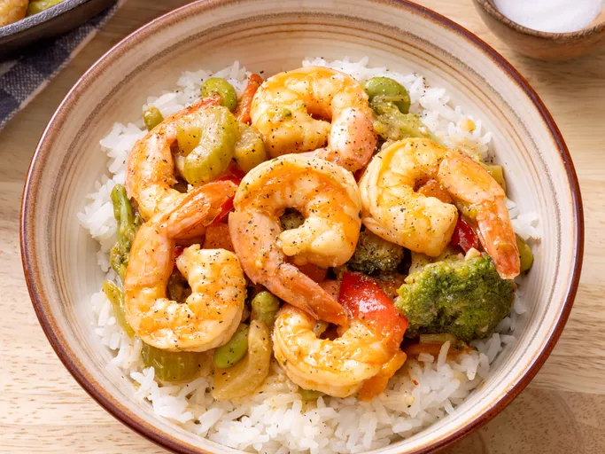 Esta receita de camarão salteado com legumes congelados, camarão congelado e um molho simples para refogado fica pronta em menos de 30 minutos para um jantar rápido e fácil! Sirva com arroz ou macarrão e aproveite.